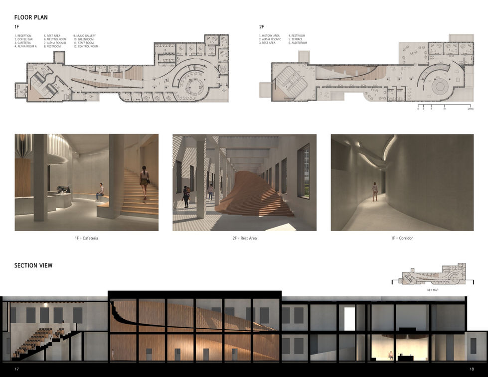 This project renovates a disused building of historical significance located in downtown Seoul. The building, once used as a hospital, is reimagined as a space where music becomes a medium for mental healing. The design draws from Dapgyo, an old Korean communal custom in which neighbors gathered to enjoy music as a way to ward off illness and misfortune. This cultural reference informs both the spatial programming and the architectural motif.